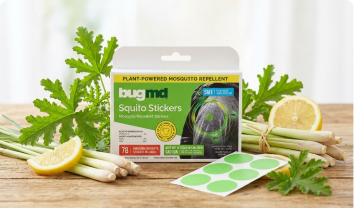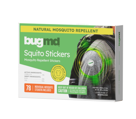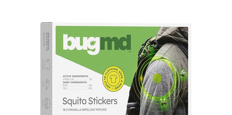 Frequently Asked Questions BugMD Squito Stickers are formulated with 100% all-natural Citronella Oil — no DEET or other harmful chemicals. Citronella Oil naturally repels mosquitoes away. Plus a unique slow-release technology allows for the gradual delivery of the oil from the non-woven nylon patch, making it possible for wearers to enjoy up to 72 hours of continuous protection from mosquito bites.